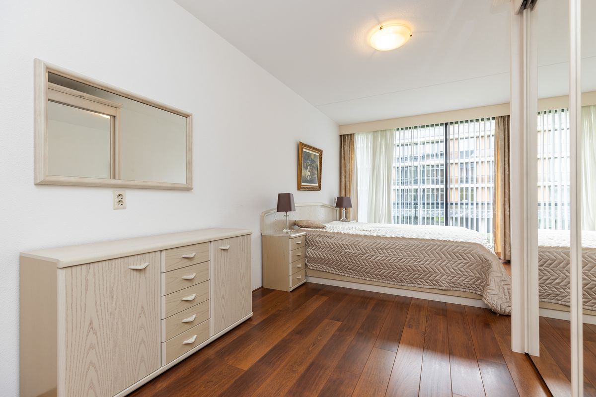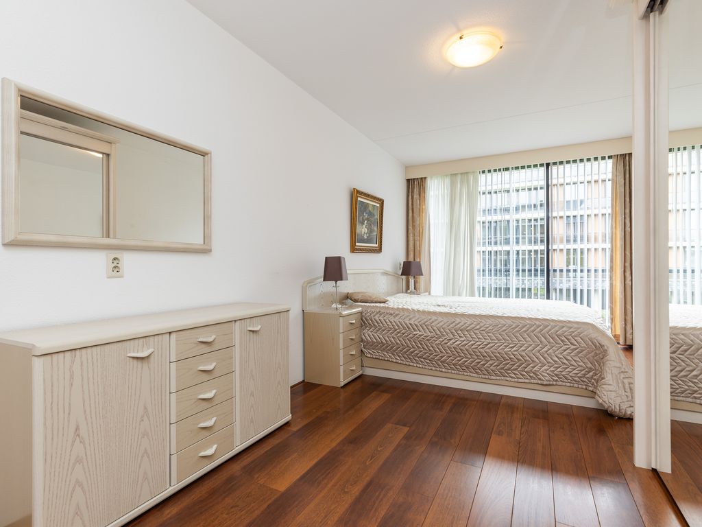 De ruime slaapkamer (ca. 5,88 x 2,99 m) heeft via een schuifpui direct toegang tot het balkon en is voorzien van een elektrisch bedienbaar screen.