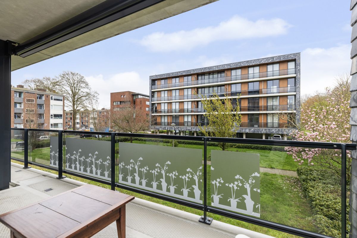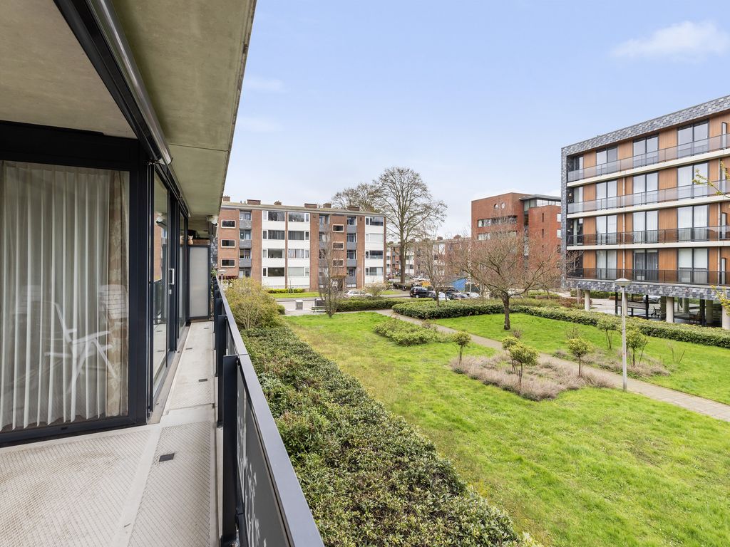 Via een schuifpui is het balkon bereikbaar, waar u door de hoekligging geniet van een prachtig uitzicht op het groen.