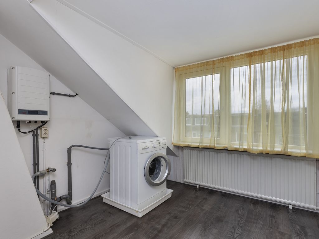 Slaapkamer 4 / hobbykamer: circa 2,88 x 2,68 m, met aansluiting voor de wasmachine en omvormer van de zonnepanelen.