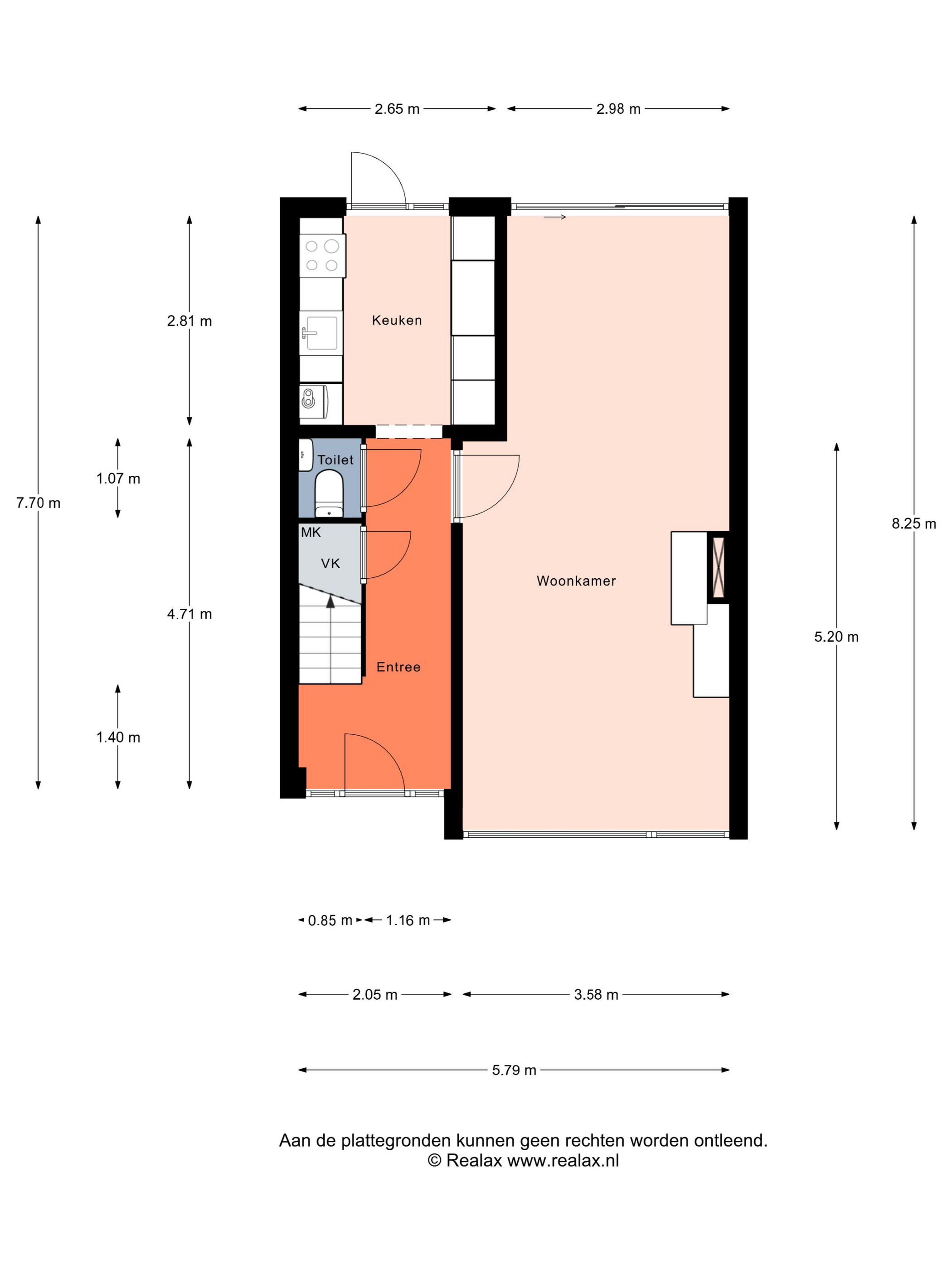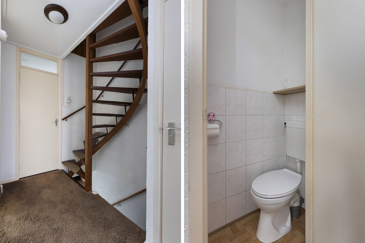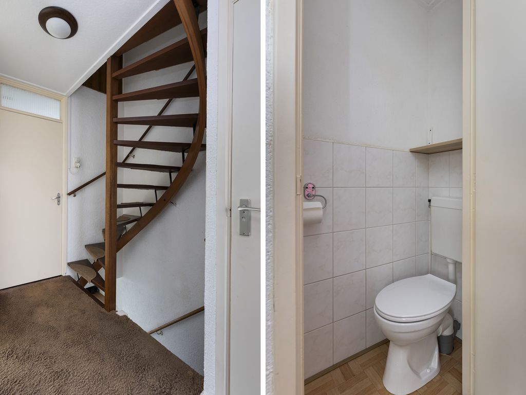 Bij binnenkomst betreed je de hal met toegang tot de trapopgang, de trapkast met meterkast, het toilet en de woonkamer.