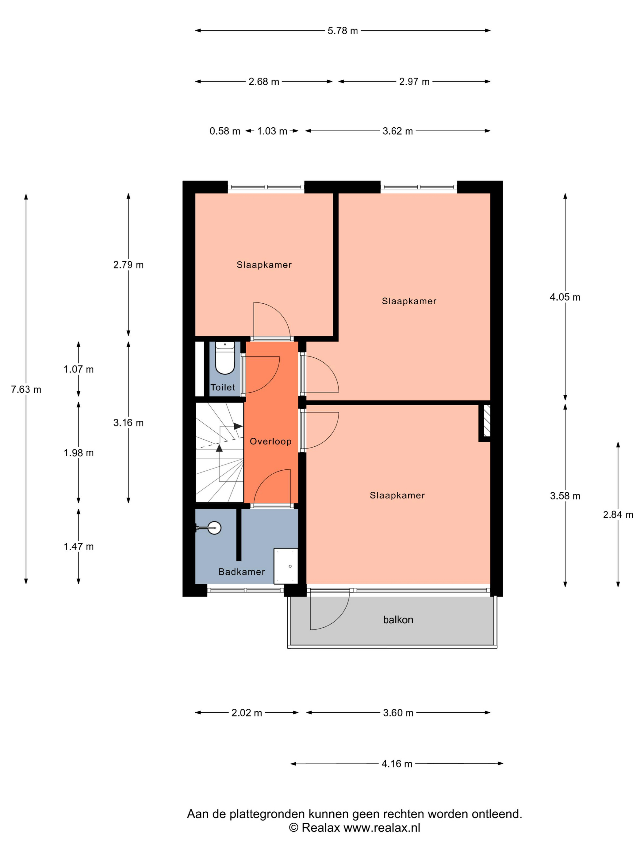 Slaapkamer 3 (achterzijde): circa 2,79 x 2,68 m.