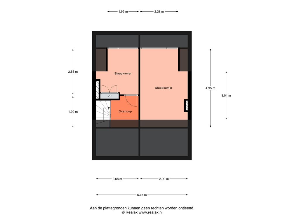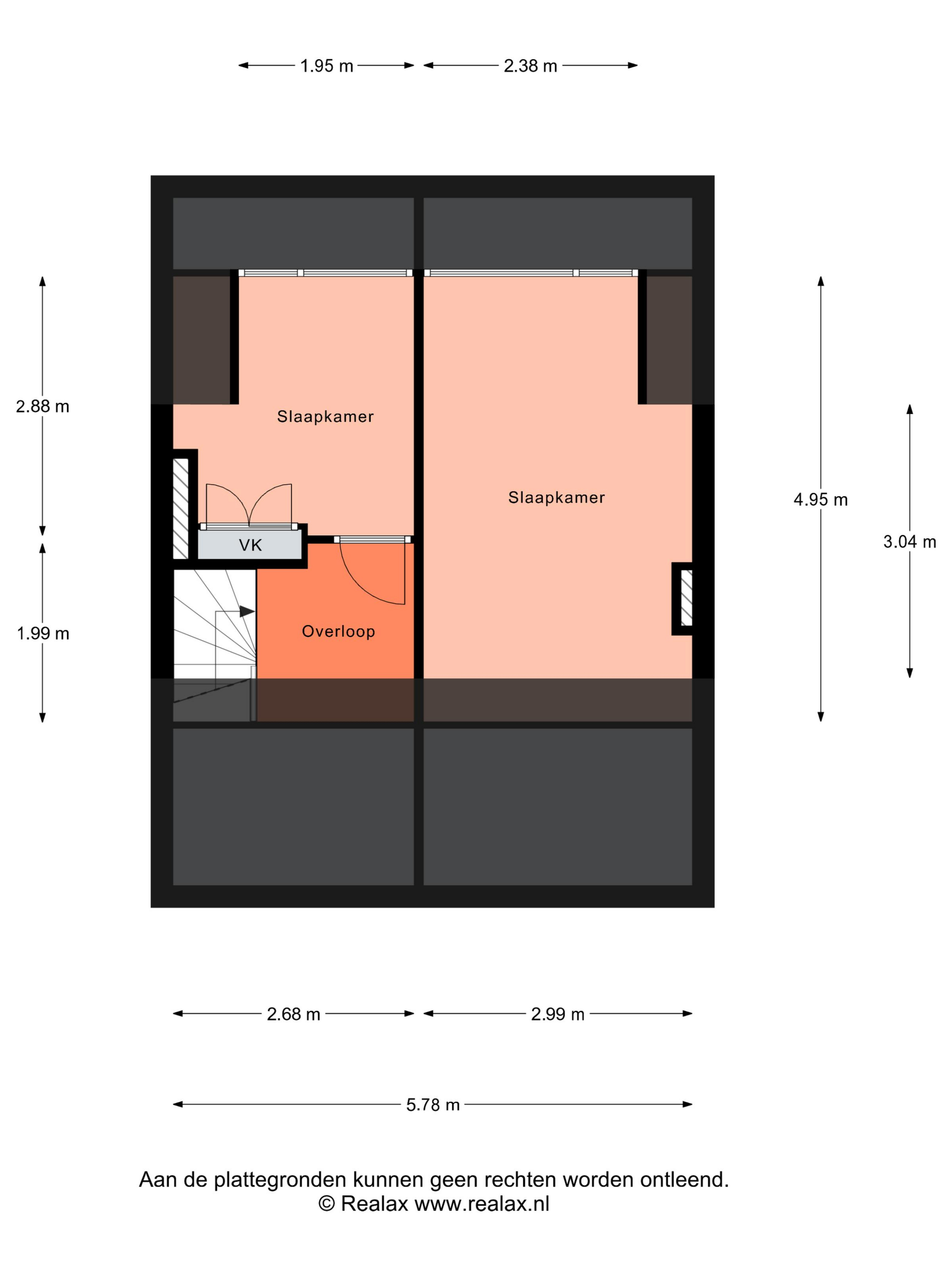 Slaapkamer 5: circa 4,95 x 2,99 m, voorzien van een kunststof dakkapel aan de achterzijde voor extra ruimte en lichtinval.