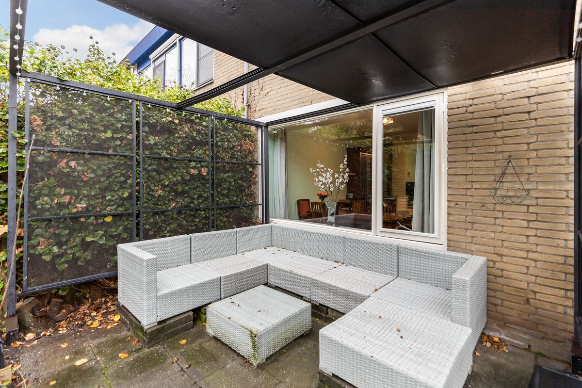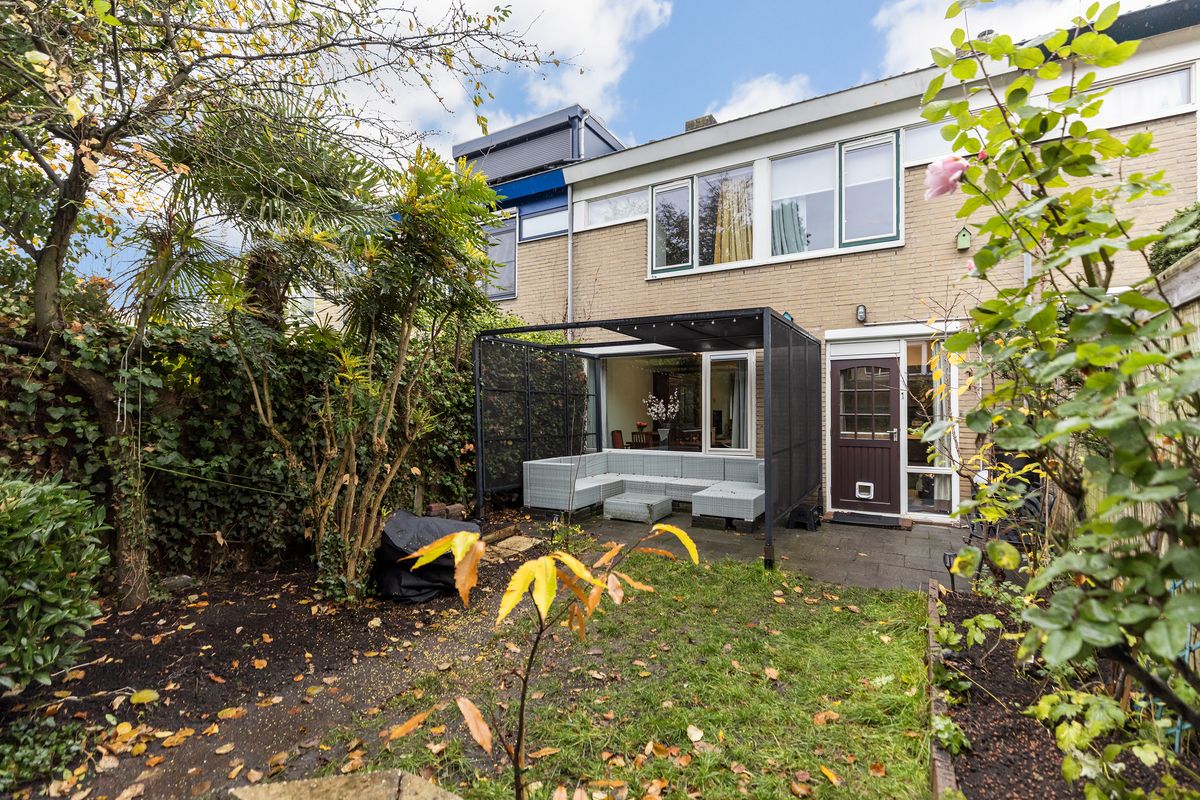 De achtertuin (ca. 9 m diep tot aan de berging en ruim 6 m breed) ligt heerlijk op het zuidoosten.
