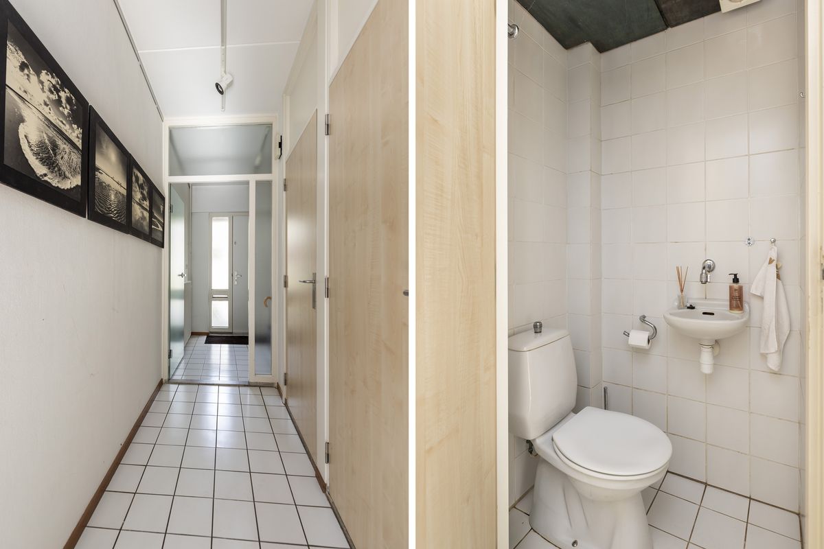 Vanuit hier kom je in de hal met toiletruimte en een praktische trapkast, waarna je toegang hebt tot de royale living.