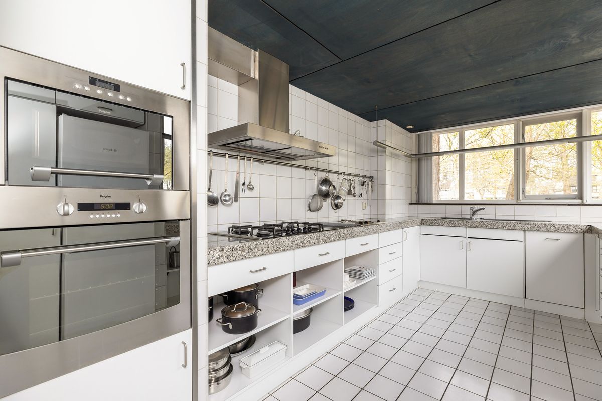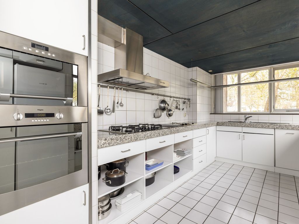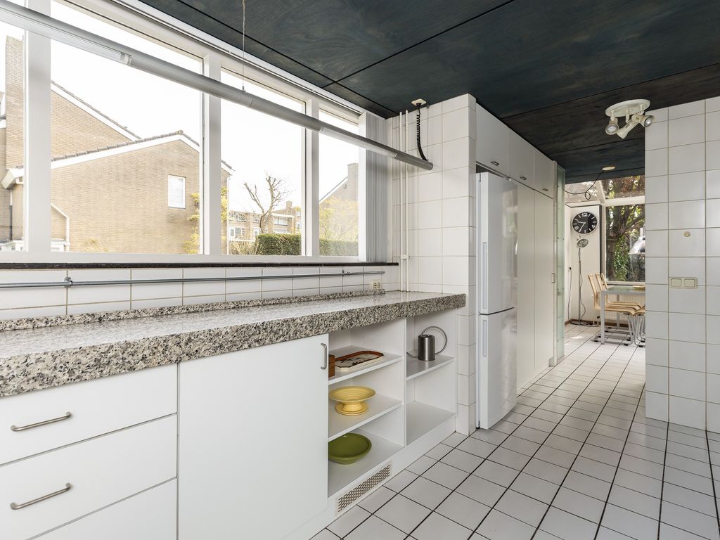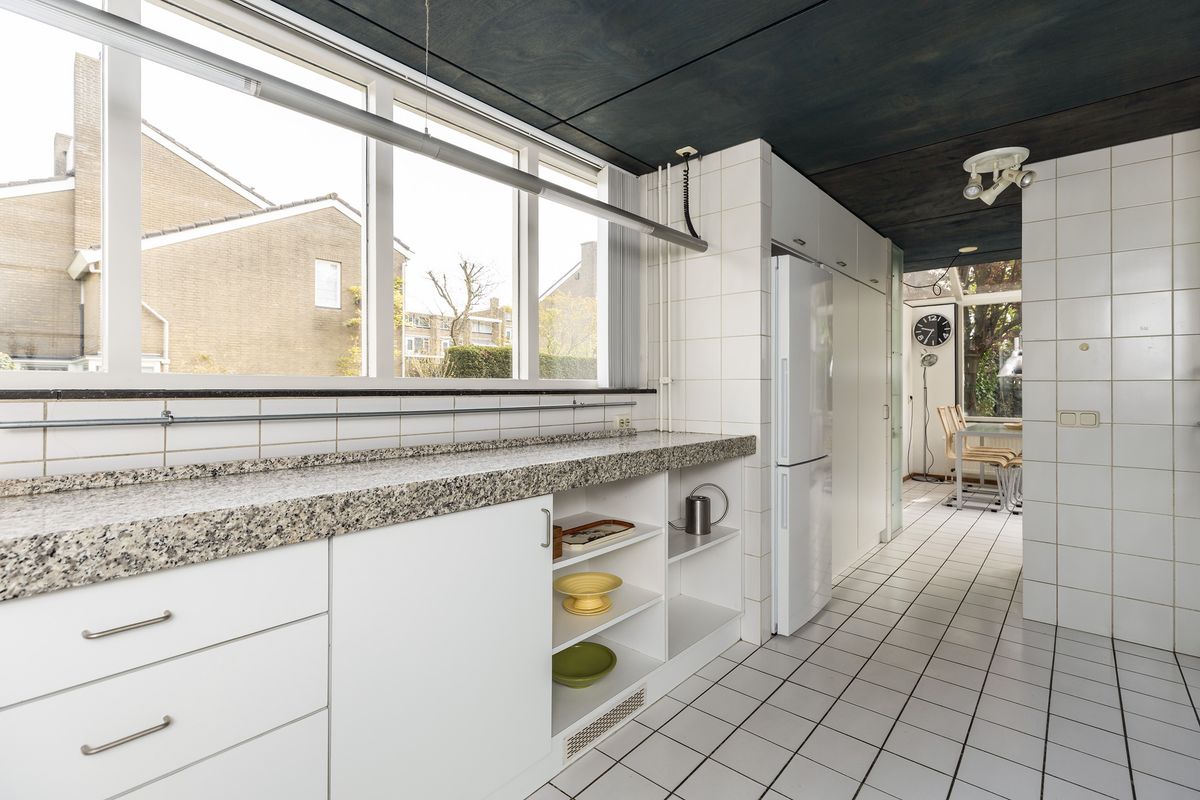 De keuken is gelegen in de uitbouw met ramen aan twee zijden waardoor veel lichtinval. Noodzakelijke inbouwapparatuur is aanwezig.