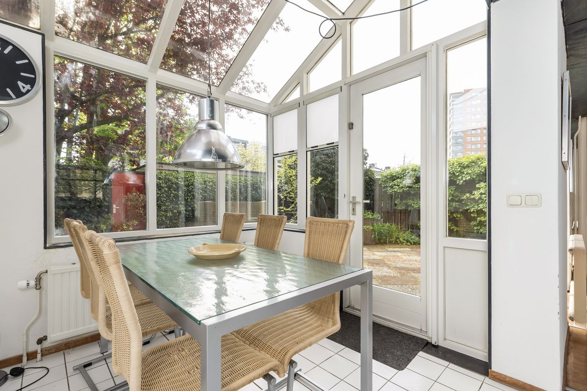 Aansluitend bevindt zich de serre, die zorgt voor een directe verbinding met de achtertuin.