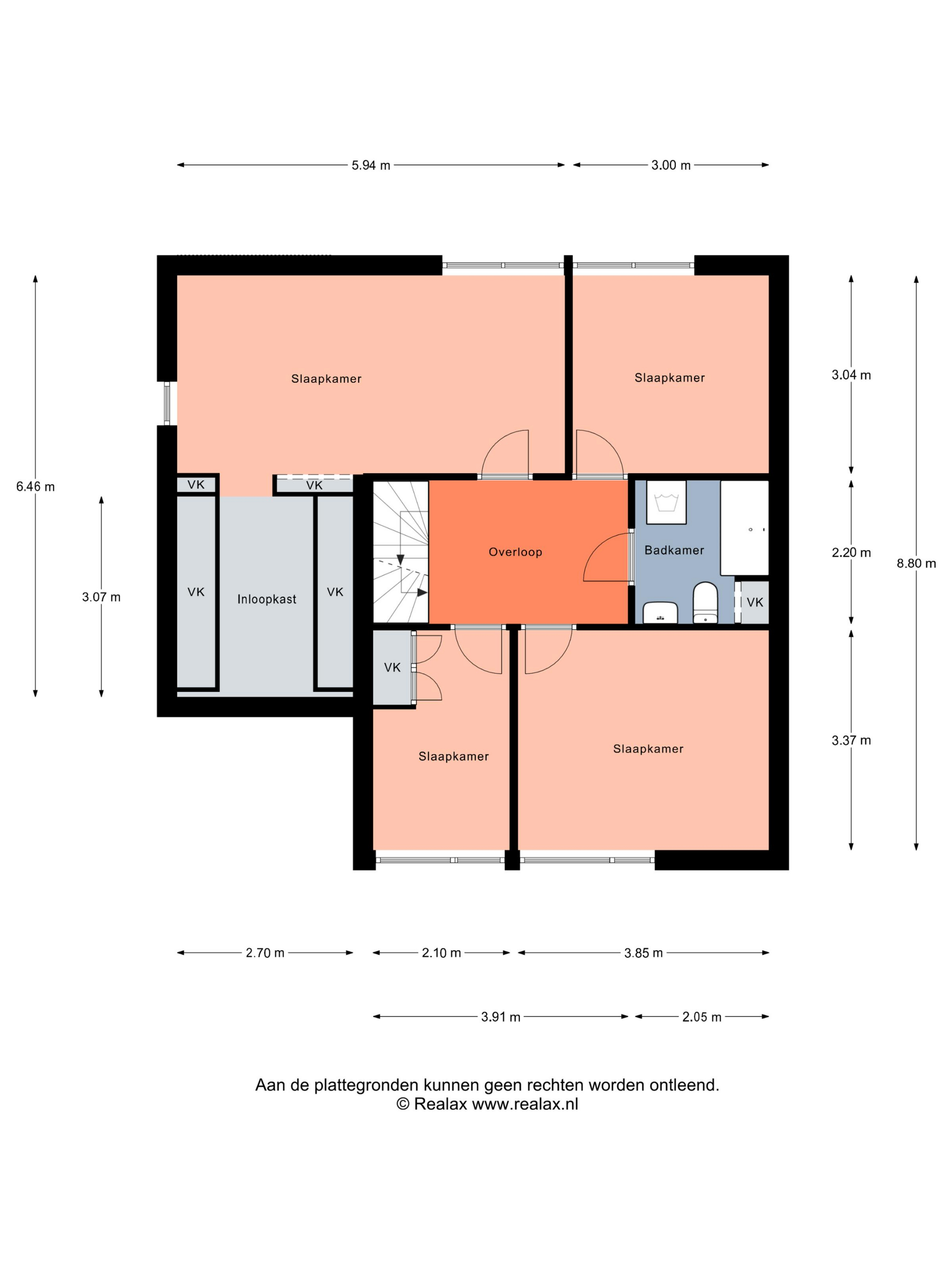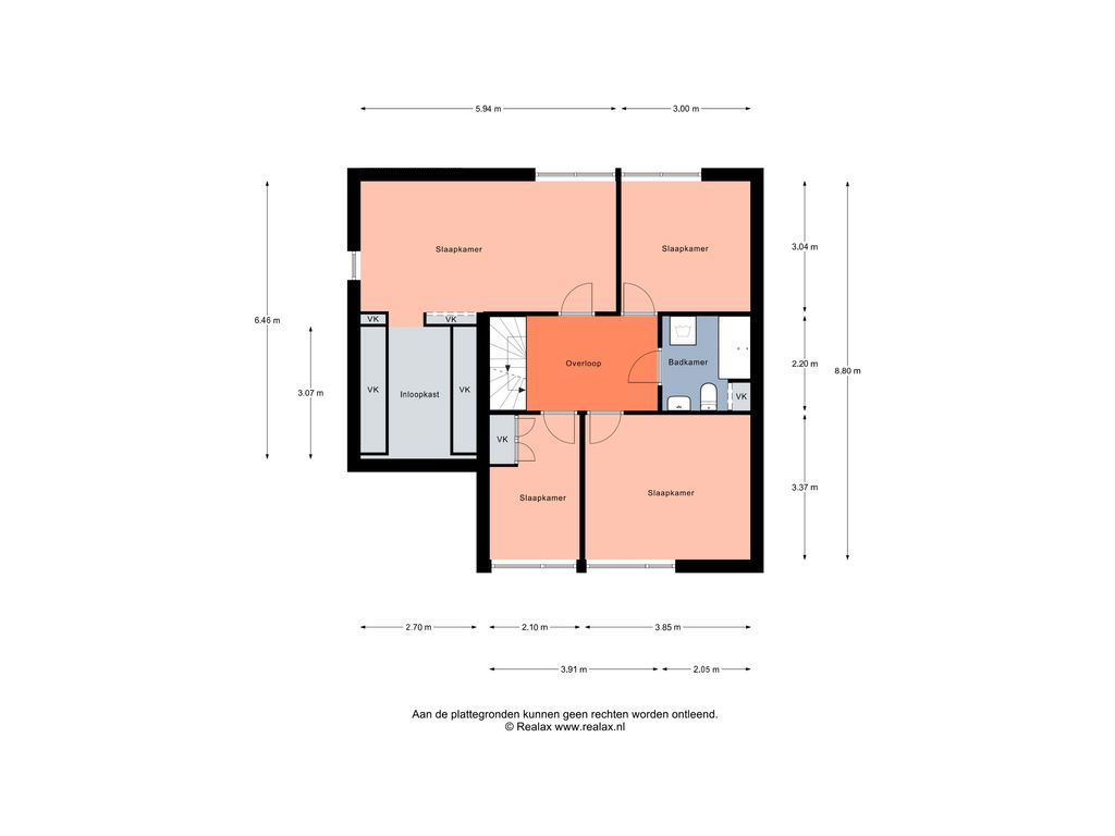 Slaapkamer 1: deze hoofdslaapkamer is opvallend ruim (ca. 5,94 x 3,04 m) en beschikt over een inloopkast van ca. 3,07 x 2,70 m.