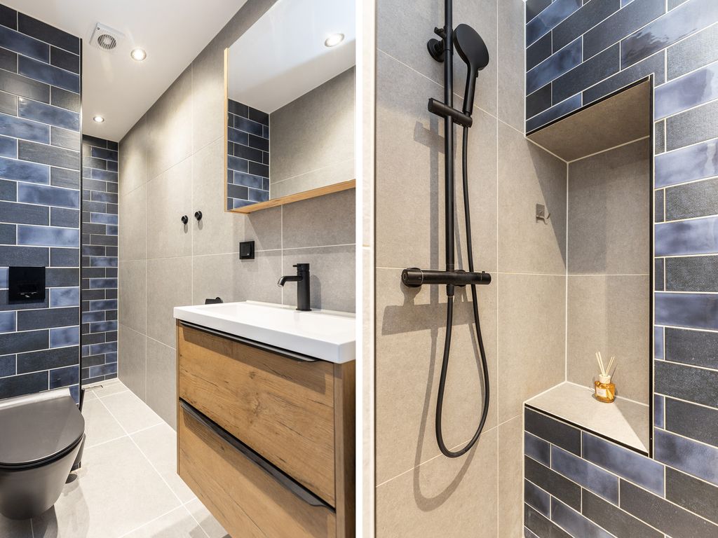 De badkamer (circa 2,50 x 1,18 meter) is in 2022 verbouwd en modern uitgevoerd.