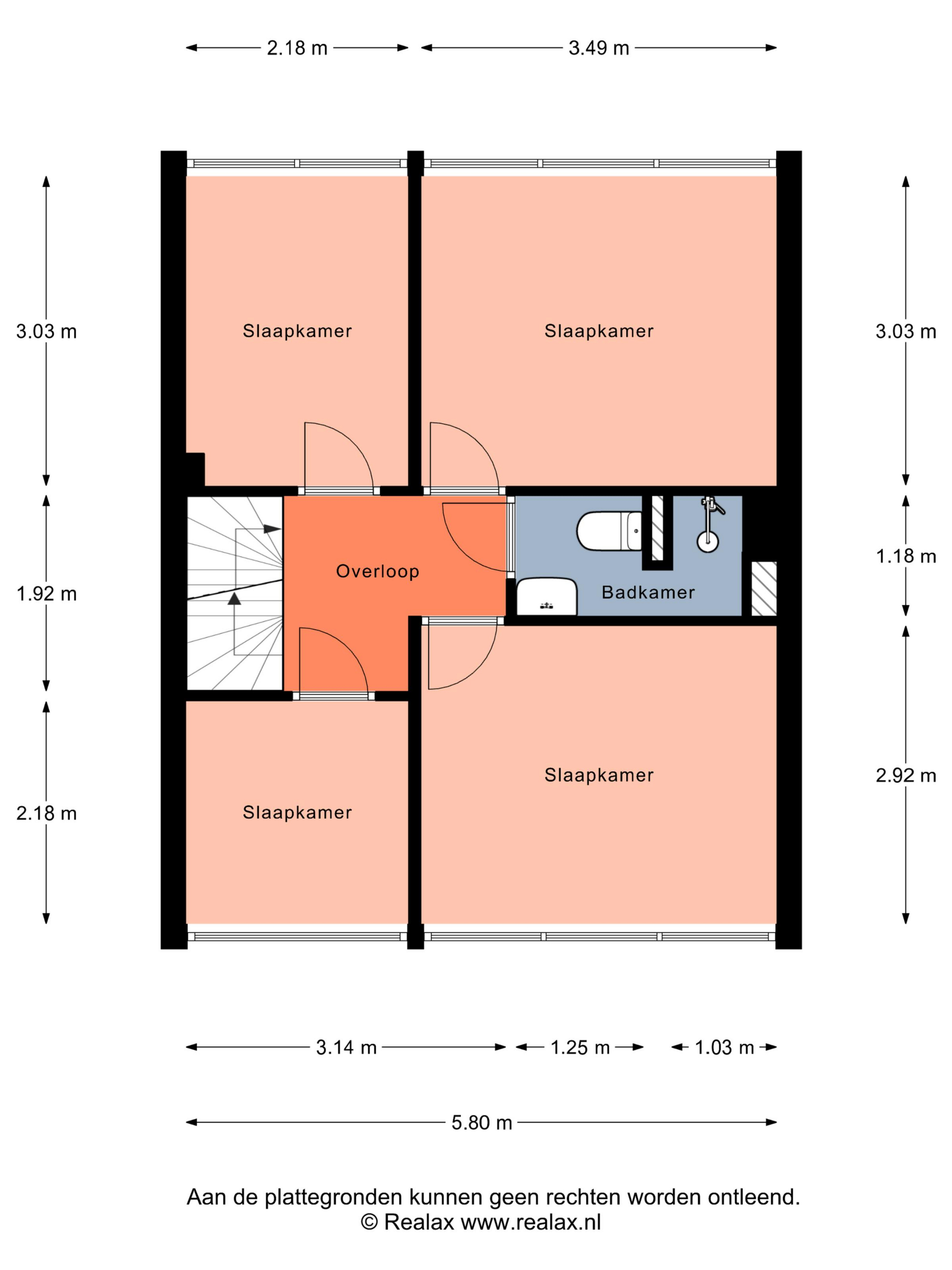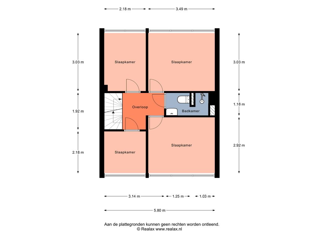 Slaapkamer 3 (achterzijde) circa 3,03 x 3,49 m.