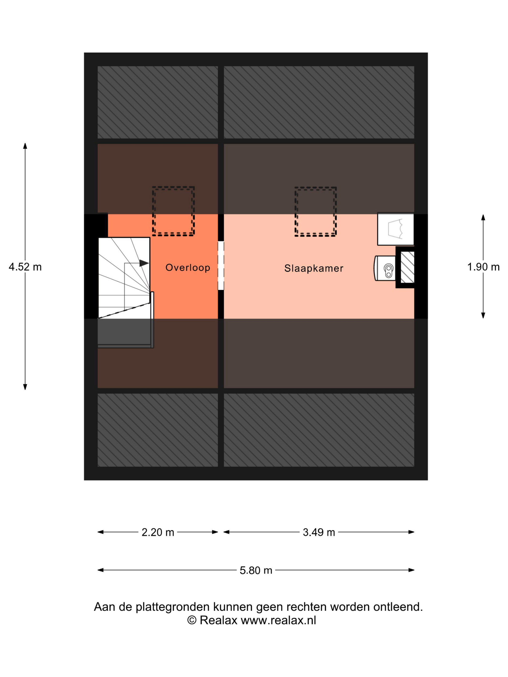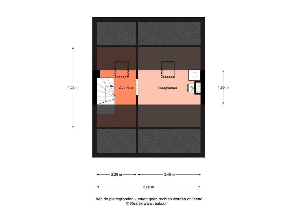 Hier bevindt zich de overloop met dakraam en de 5e slaapkamer met de opstelplaats voor de cv-ketel (Tzerra M 28c Plus, 2016, huur).